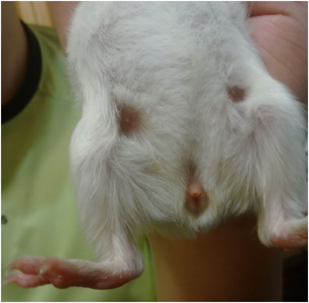 Что касается самцов, то их половые органы напоминают прямой столбик. Получается, идет прямая линия, а в самом верху от нее – небольшой бугорок. И если пощупать область над столбиком, можно будет обнаружить половой член. Как провести пальпацию? Нужно перевернуть животное спинкой вниз. При этом его нужно тщательно держать двумя руками. Потом нужно раздвинуть кожу и немного надавить на брюшко, а потом немного сильнее, оттянув пальцы вверх.