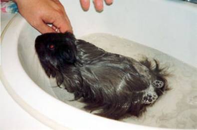 В принципе регулярного купания морская свинка не требует, и все же иногда обстоятельства складываются таким образом, что купание абсолютно необходимо. Например, в результате нарушения питания у свинки может случиться расстройство кишечника, и тогда вся шерсть, особенно в районе заднего прохода, может быть испачкана жидкими испражнениями.